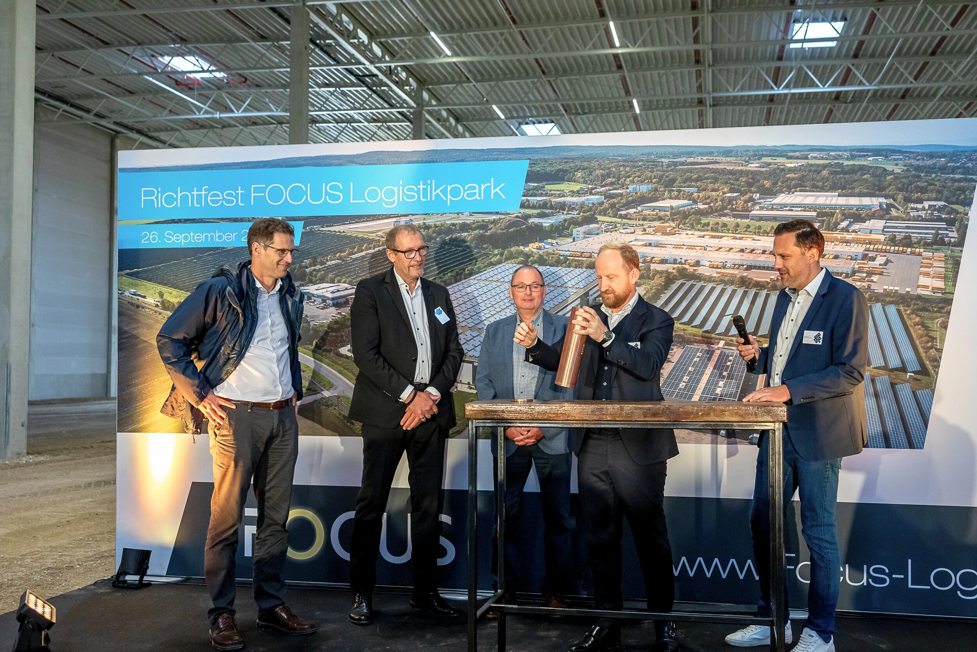 Nach rund fünf Monaten intensiver Bauphase hat der neue Logistikpark in Nohra sichtbare Formen angenommen: Am Donnerstag feierte PRODAC gemeinsam mit dem globalen Immobilien-Investmentmanager BGO, dem Weinheimer Projektsteurer Modevconsult und dem Generalunternehmer Goldbeck das Richtfest für den FOCUS Logistikpark.
