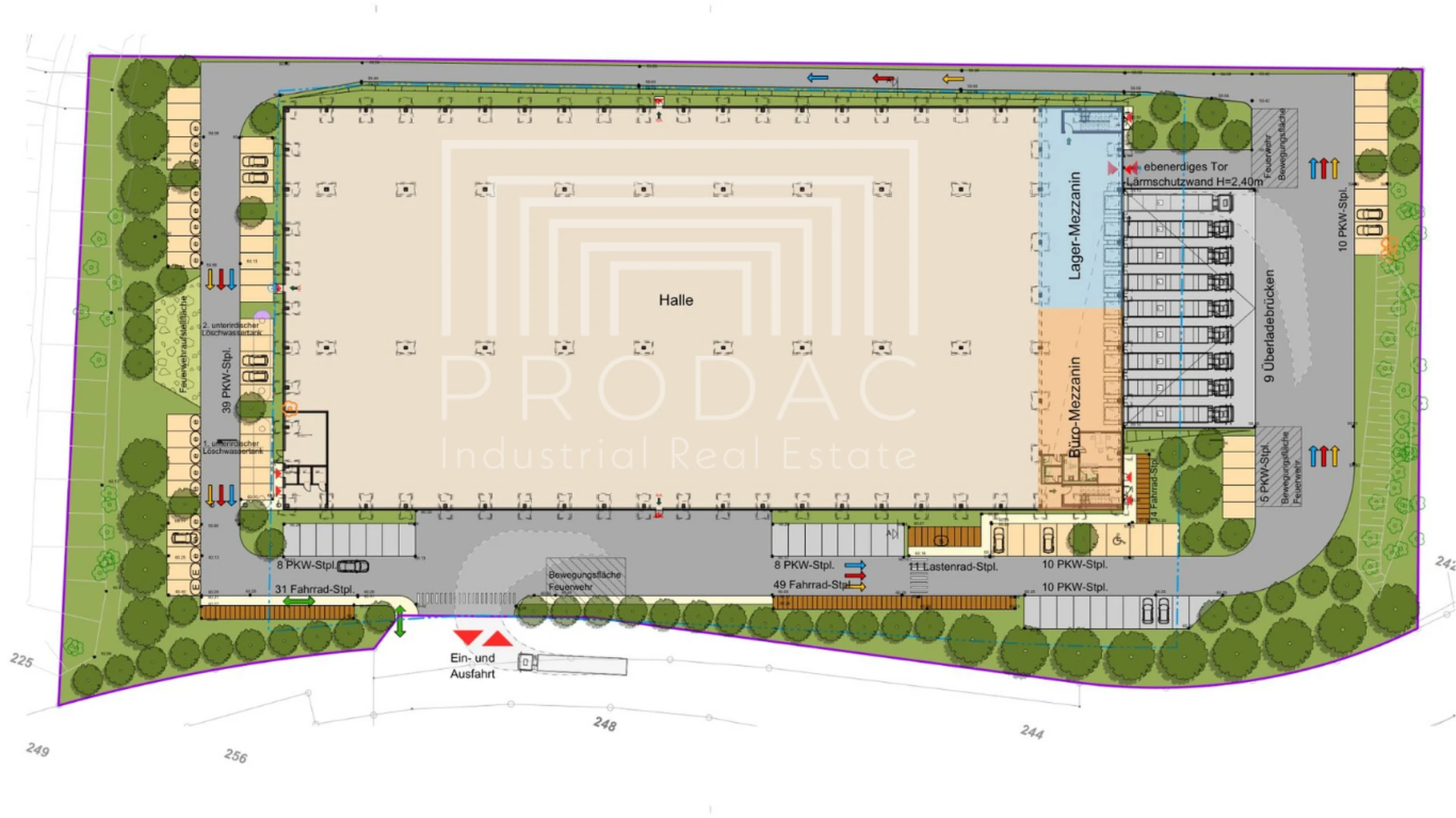 Mitten im Ruhrgebiet entsteht auf einer Grundstückfläche von ca. 18.300 m² eine neue, hochmoderne Logistikimmobilie. Der Neubau zur Alleinnutzung bietet eine Hallenfläche von ca. 7.705 m² BGF sowie ca. 462 m² BGF Büro- und 385 m² BGF Mezzaninflächen. Die Immobilie verfolgt ein nachhaltiges Gesamtkonzept an und strebt eine Zertifizierung der Deutschen Gesellschaft für Nachhaltiges Bauen (DGNB) im Baustandard „Gold“ an.
